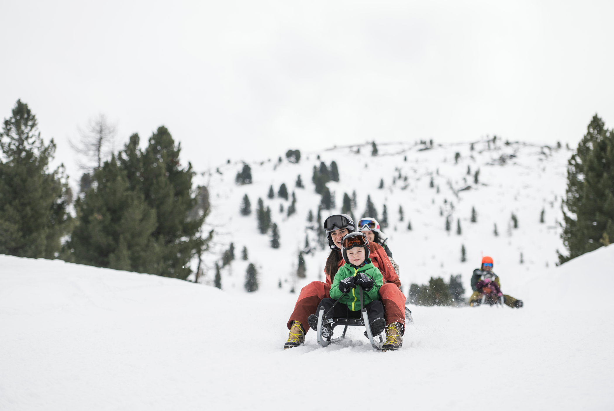 Der Winter steht dem Sommer in nichts nach: der Familypark Tamarix, zu Fuß bestens erreichbar, ist das Eldorado für kleine Snowfreaks, die namhaften Skigebiete wie der Kronplatz, der größte Skiverbund der Welt (22 km), der Speikboden (8 km) und der Klausberg (15 km) lassen Ski- und Snowboardherzen höherschlagen. Und für all jene, die die schneebedeckten Hänge auf der Rodel befahren wollen, bitte sehr — die findet ihr direkt hinter dem Haus.
