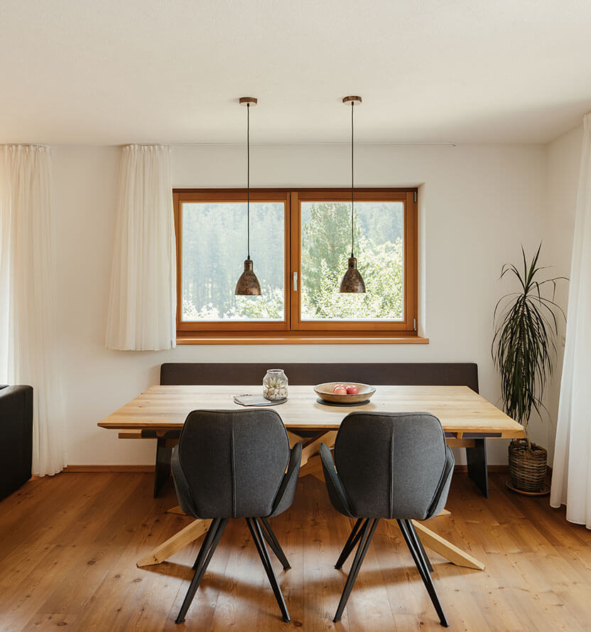 Die 86 m² große Wohnung befindet sich am Dorfrand von Mühlen in Taufers, etwas höher gelegen und somit nur wenige Fahrminuten vom Untermairhof entfernt. Hier genießen Sie vollkommene Privatsphäre.